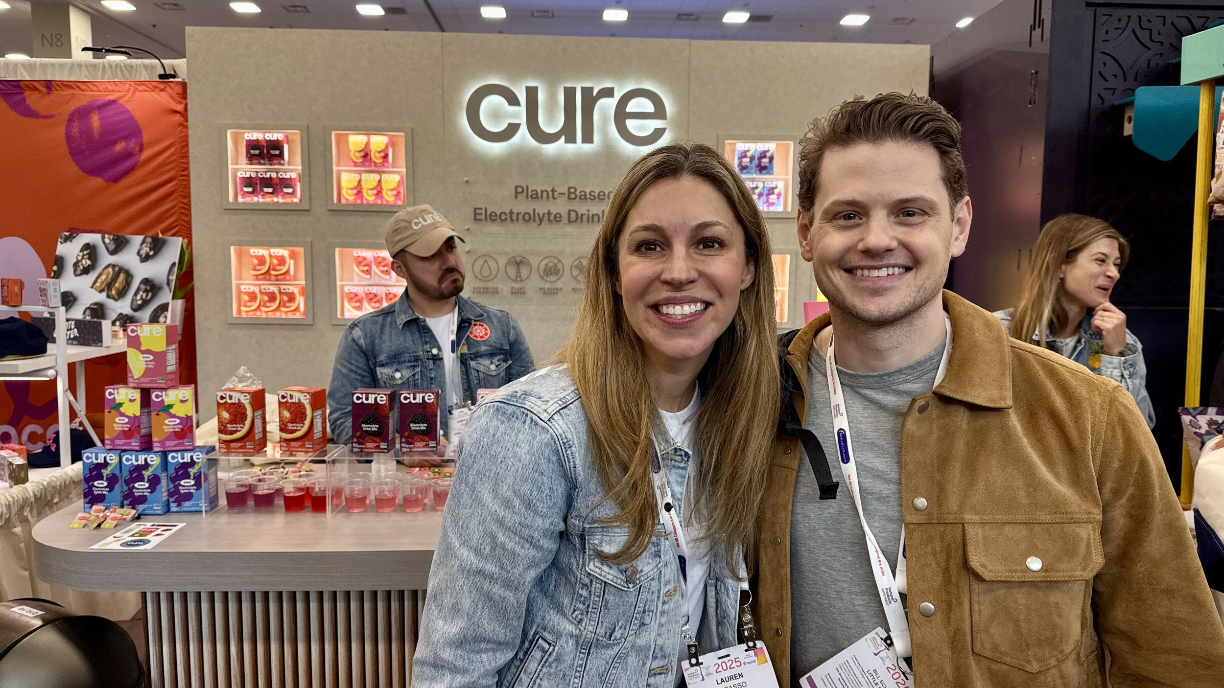Lauren Picasso (Founder & CEO, Cure Hydration) with Bill Schultz (Partner) at Expo West 2025